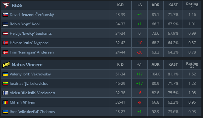 FaZe and the playoff stage magic work for FaZe as usual. They’™re in great shape, same as Natus Vincere, and now it’™s their chance to take revenge for their loss at the Grand Final of the PGL Major. The same goes for FaZe players; every single player makes an impact in the game and gives their all.