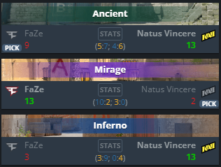 Even though Natus Vincere won their last game against FaZe, it was FaZe who was considered a favorite to win it back then. Nothing changed since then, and the odds are still favoring FaZe here. The main reason is that overall, they still look like a better team. We expect FaZe to win and take their revenge on Natus Vincere.