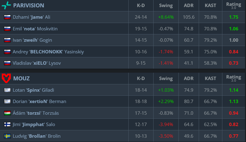On Dust2, PARIVISION took an early lead in the series, led by a strong showing from in-game leader and AWPer Dzhami “Jame” Ali.