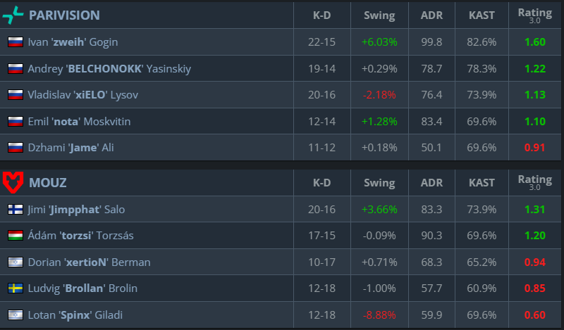 MOUZ started strong in both halves, winning the first pistol round and a force-buy after the break, but Jame kept stopping their pushes. He won key opening duels, made big plays, and set the pace in gun rounds to help PARIVISION win 13-11.