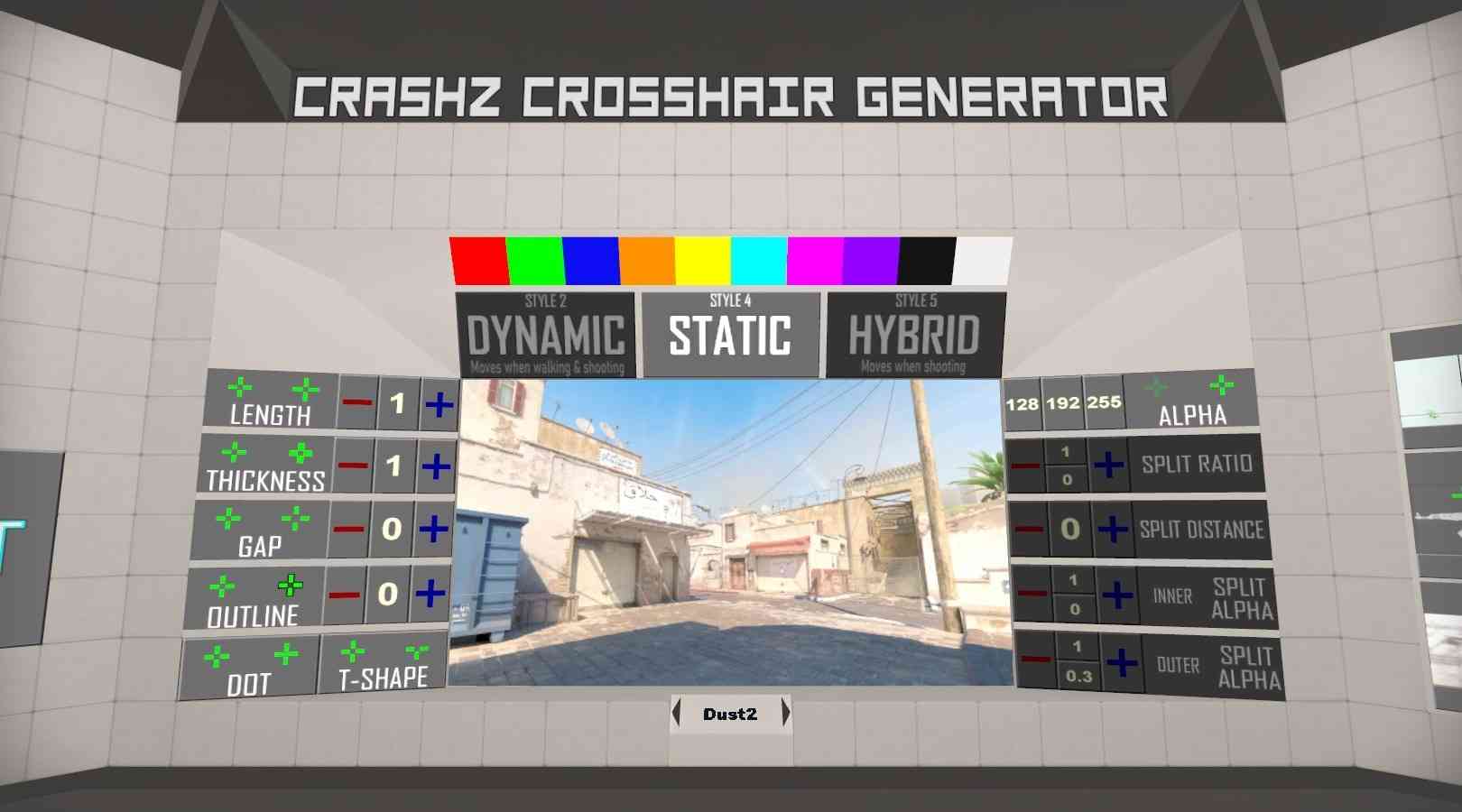 Since you can’™t aim properly without a good crosshair, the infamous Crashz Crosshair map is the go-to for custom crosshairs, even back in CS:GO.