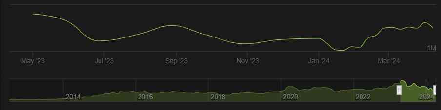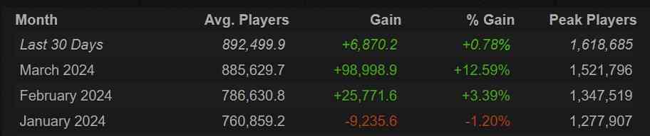 At the end of December 2023, it grew 7.78% from the previous month to 770,000 concurrent players.