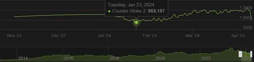 The worst time Valve faced in CS2 was in January 2024. On the 23rd, the lowest Peak Players were recorded’868,187.
