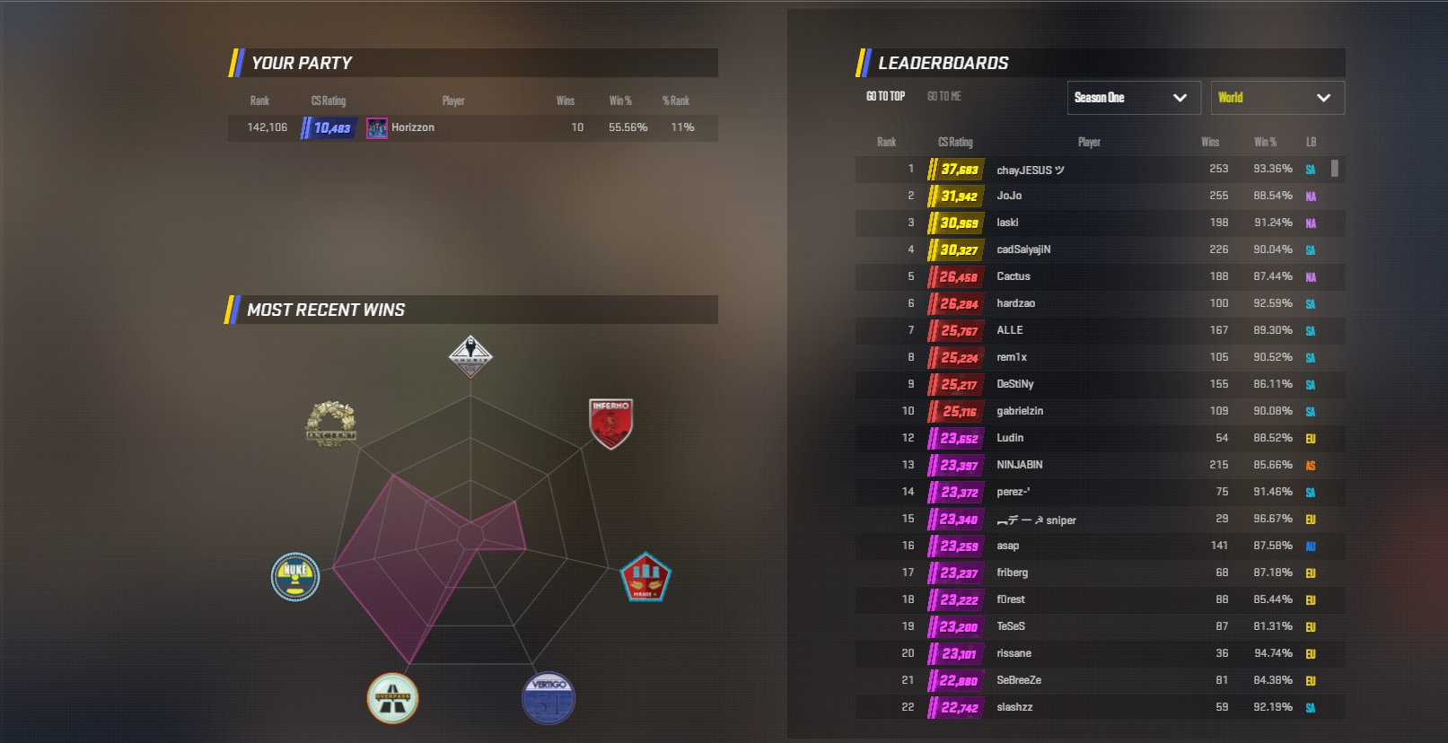 If you’re new to CS2, the amount of games might seem like a lot to catch up to, especially if you have lofty ambitions. But not to worry, these rankings aren’t permanent. As indicated by the ‘Season One’ tab above the leaderboard, rankings will be seasonal. The season dates aren’t confirmed, but the Beta leaks hinted at a Spring 2024 reset. It’s unclear right now how hard the reset will be, or if there’ll be any reward for those who finished high, but it’s safe to assume they won’t just leave it as is.