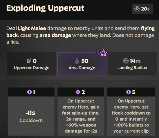 Remember that Hook and the Exploding Uppercut ability go well together. When using a Hook, you can propel yourself in your desired direction and then use an Exploding Uppercut, which will push your opponent in that chosen direction.