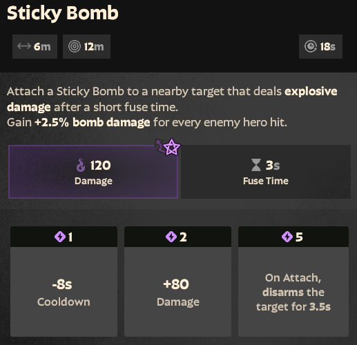 First, we need to maximize Sticky Bomb to disarm enemies.