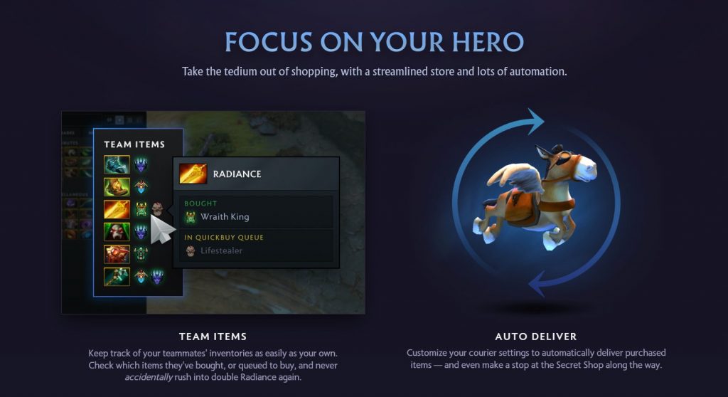 The new Dota 2 update comes with several hero-focused options, such as Team Items. This allows players to keep track of their teammates’ inventory so that they do not overlap by getting the same items.