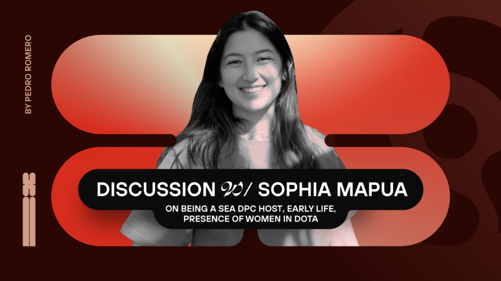 Entering the 2023 Dota Pro Circuit, hailing from the Philippines, one more person made their debut on the hosting desk: Sophia Mapua. A fiercely devoted Dota fan from a young age, Mapua dabbled in numerous corporate jobs before deciding to pursue content creation in late 2020. From then on, she would dip her toes into working as a presenter, host, and general talent for organizations such as BrenPro Inc. and Talon Esports, the latter of which she became a content creator in early 2022 among additional commitments.