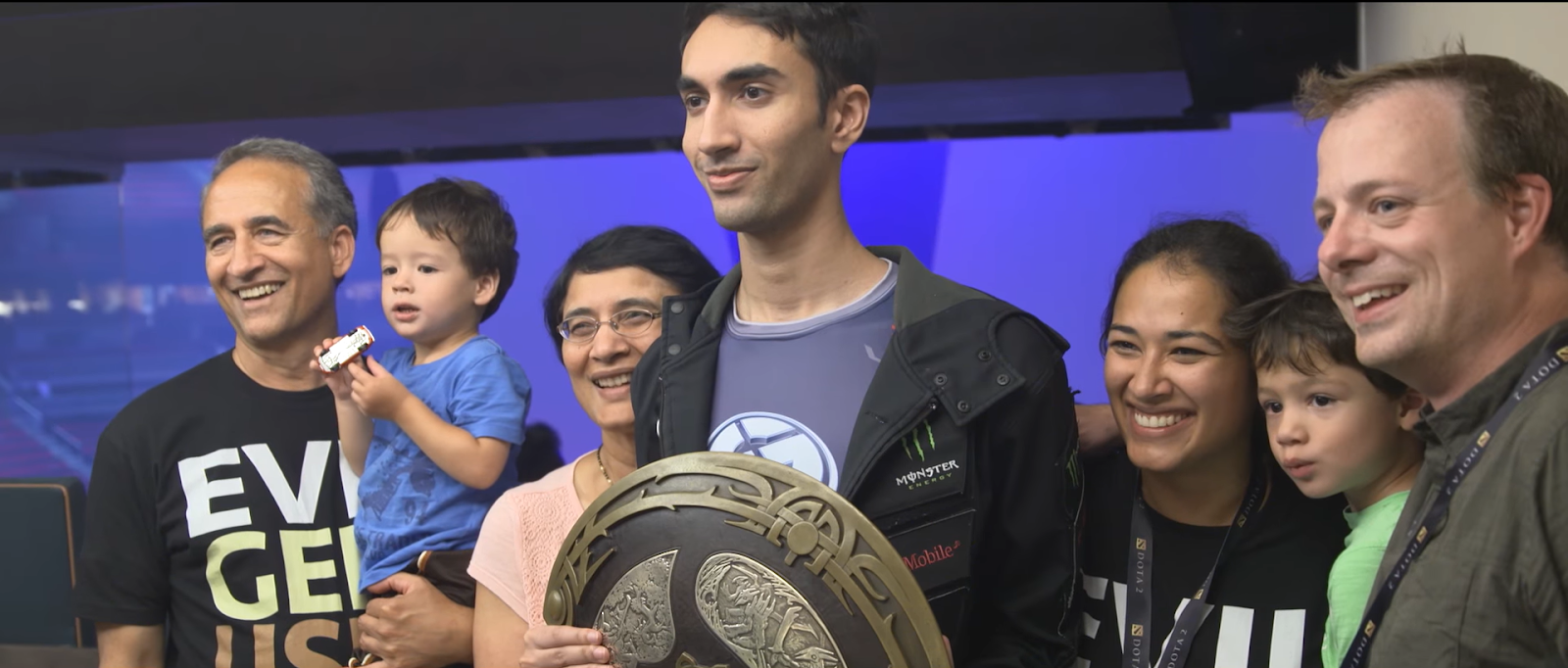 Pic: VALVE. Saahil “Universe” Arora and his family at TI5.