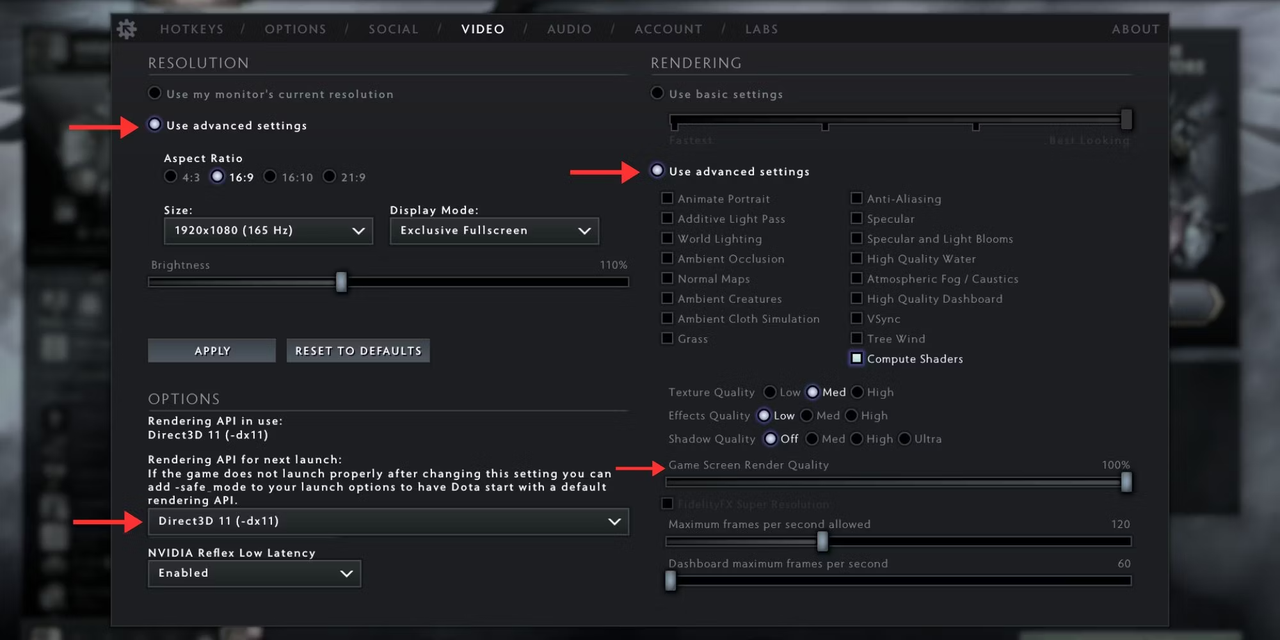 Dota 2 supports rendering APIs like DirectX, OpenGL, and Vulkan. Vulkan performs better on some systems, especially those with AMD graphics cards. Experiment with these settings in the game’s Video options to see which performs best.