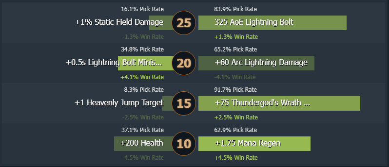 Some Zeus players choose Divine Rampage as their first facet, which has a 54.01% presence and a 51.58% win rate. Livewire, on the other hand, has a 45.99% presence and a 50.61% win rate.