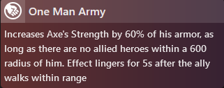 Axe takes first place with the highest winning percentage with the One Man Army Facet, with a win rate of 61.20%.
