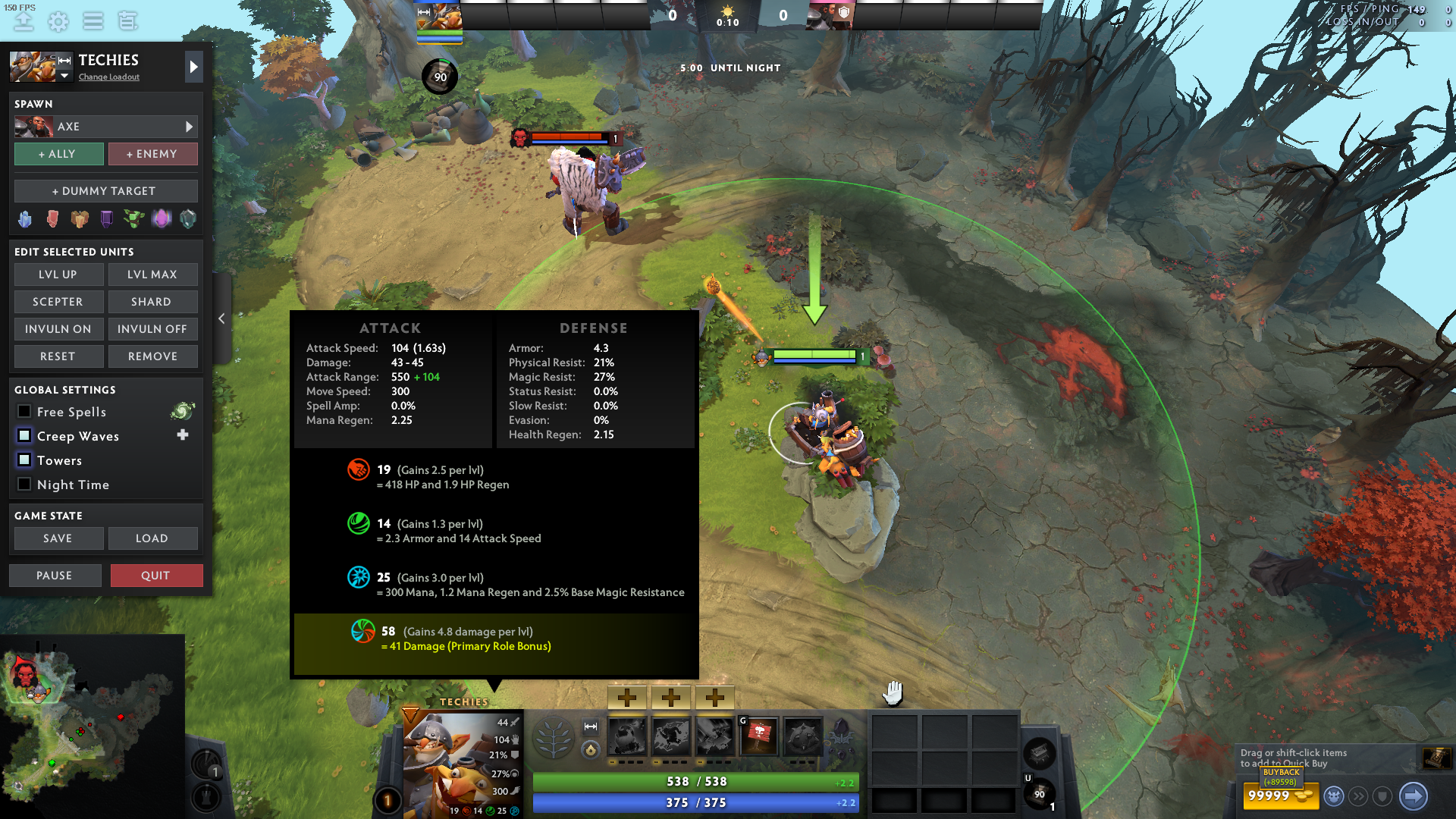 Squee’s Scope increases Techies’ attack range with each unit of attack speed.