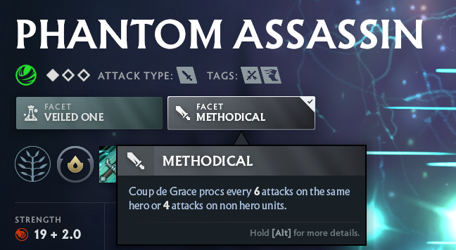Phantom Assassin ‘” Methodical Facet. This facet increases damage from critical attacks by an additional 100% (550% at max level) and grants the ability to gain critical hits, similar to Monkey King’s Jingu Mastery ability.