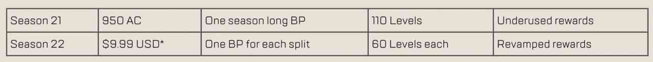 The game will feature two battle passes per season, one for each split, and each will cost $9.99. Previously, players could get a complete season pass for 950 Apex Coins and, upon completing it, earn enough AC to purchase the next pass at no additional cost.