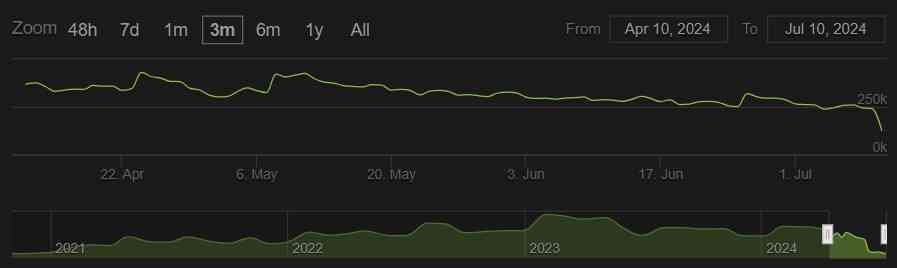 The data show that online Apex Legends on PC on Steam has been declining lately as evidenced by the graph.