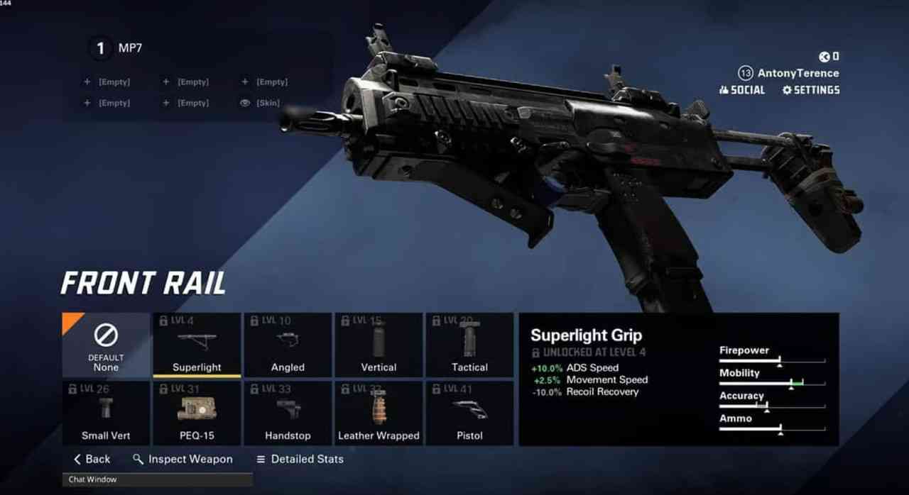 However, with the Superlight Front Rail, which increases mobility and aiming speed, we will remove the barrel extender’s unnecessary effect. However, it further reduces recoil recovery. Again, we choose an attachment to counteract this.
