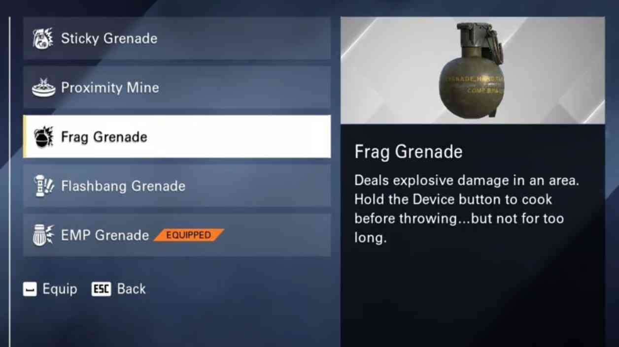 - Selection of secondary weapons as well as devices for MP7