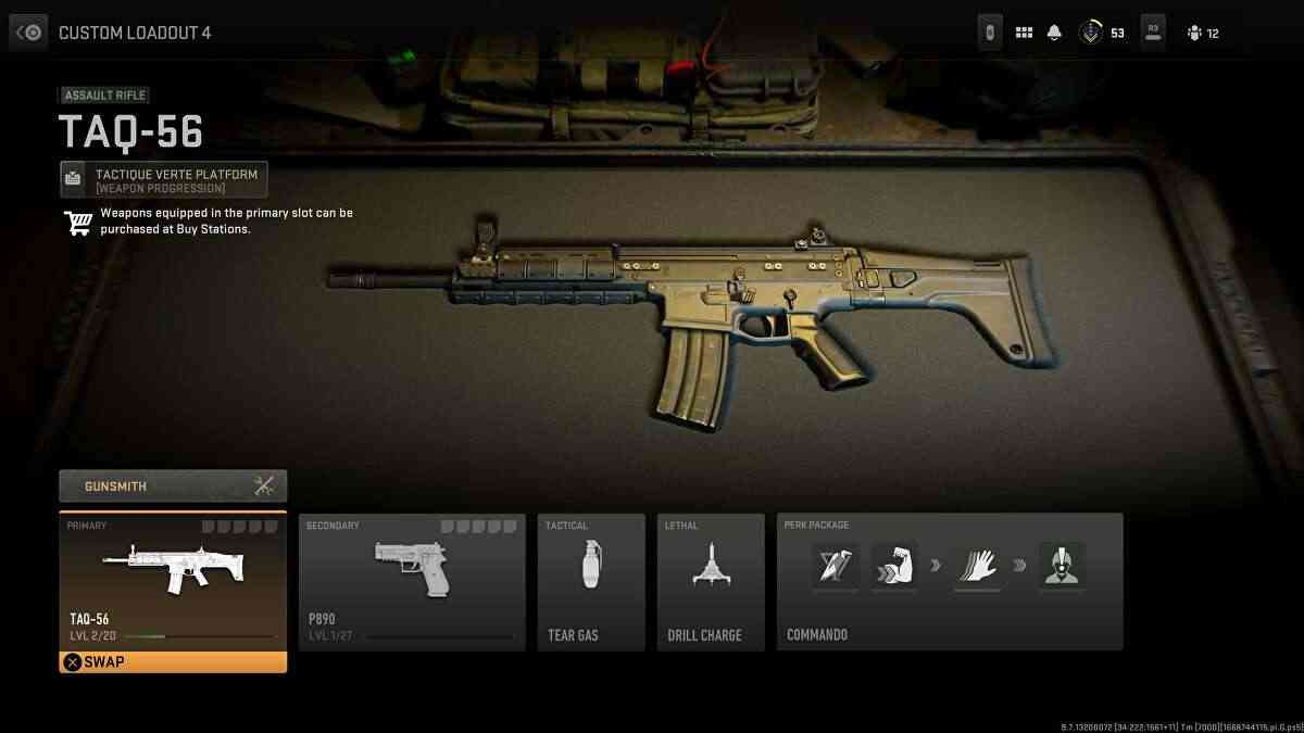 The SCAR-L, or TAQ-56 as it is called in the Warzone, is one of the best guns in the game! It has low recoil and decent damage over range, making it an excellent choice. A good loadout couldn’t hurt, though. Consider upgrading the magazine’s capacity first of all.
