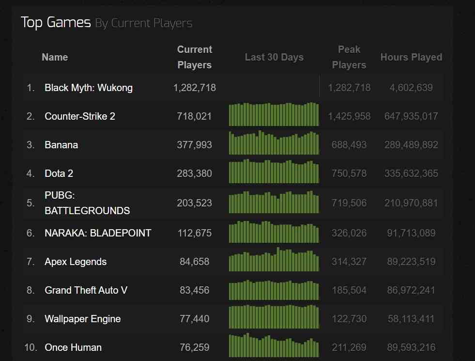 If you consider only single-player story games, which Black Myth is, it tops the chart in terms of peak online: