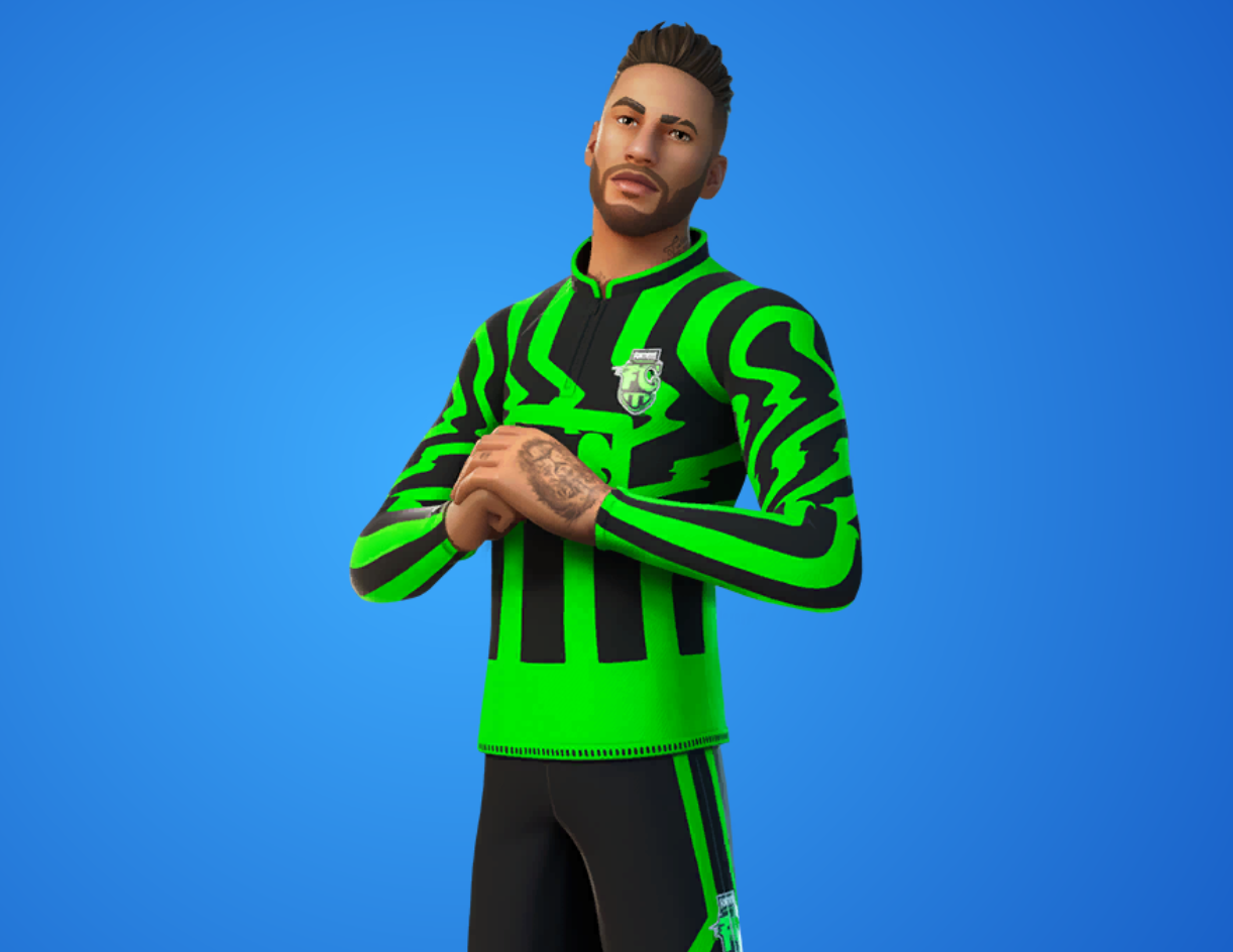 Neymar Jr.’s skin features soccer-themed cosmetics, including his signature outfit and accessories. It includes three different styles, six extra colors, exclusive emotes, and items related to his career as a professional soccer player.
