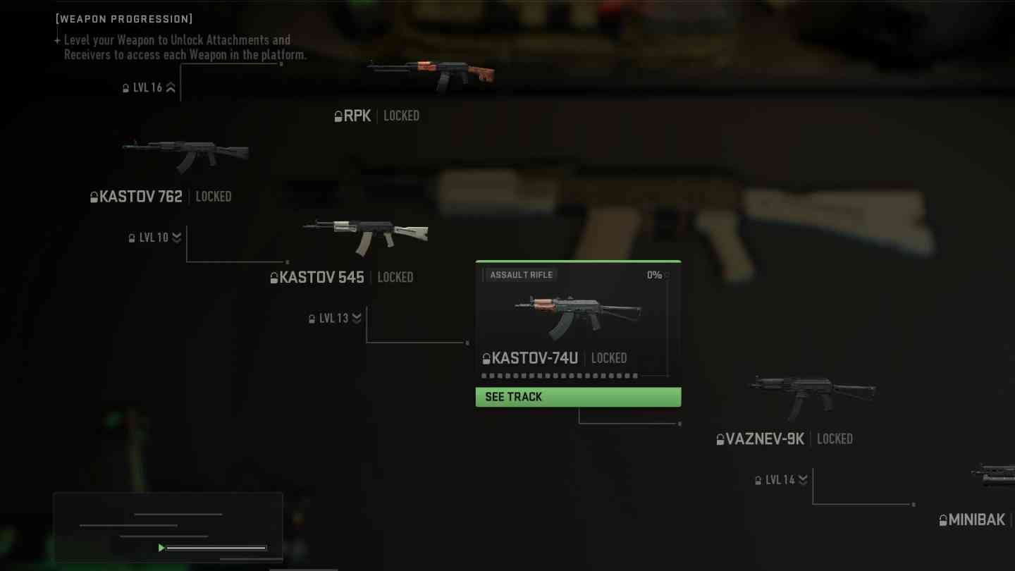 2. Level the Kastov 545 to level 13 to open the Kastov-74U.