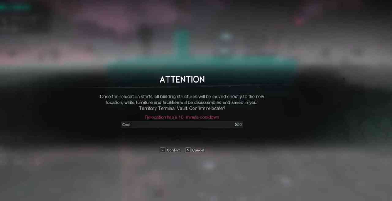 Another thing to know is that when you move an area, all of your furniture and amenities will be moved to the Territory Terminal Vault, so you’ll have to manually place them again once you move your base to a new location.