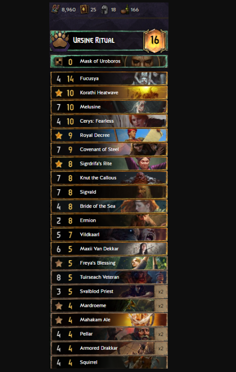 Koshchey made his return this season. Coupled with Caranthir Ar-Feinel and our beloved Sir Scratch-A-lot, it feels strong to play in long rounds. This list also uses the new scenario added, The Manor’s Dark Secret. With this scenario, you can try to contest round 1.