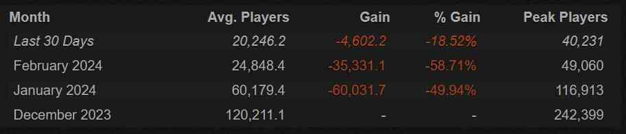Since the release, only three months have passed, and the peak online has fallen by more than 80%. If, at the start, the game could boast an online of 242,619 players, in recent weeks, this figure barely exceeds 25,000.