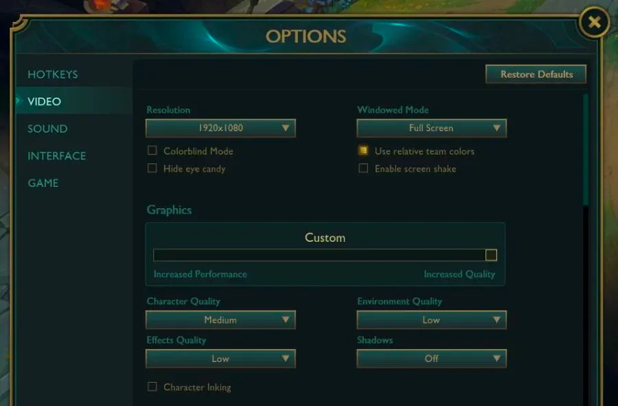 Keeping this low or medium ensures spell animations don’t slow your game during critical moments.