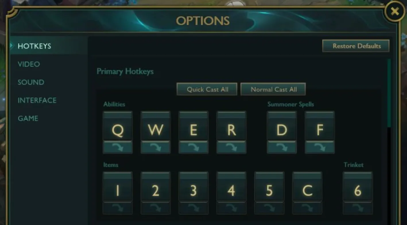 Optimizing key bindings in League of Legends can greatly enhance your gameplay efficiency and comfort. Quick Cast is highly recommended for abilities (Q, W, E, R) because it allows for faster ability usage without needing to click twice.