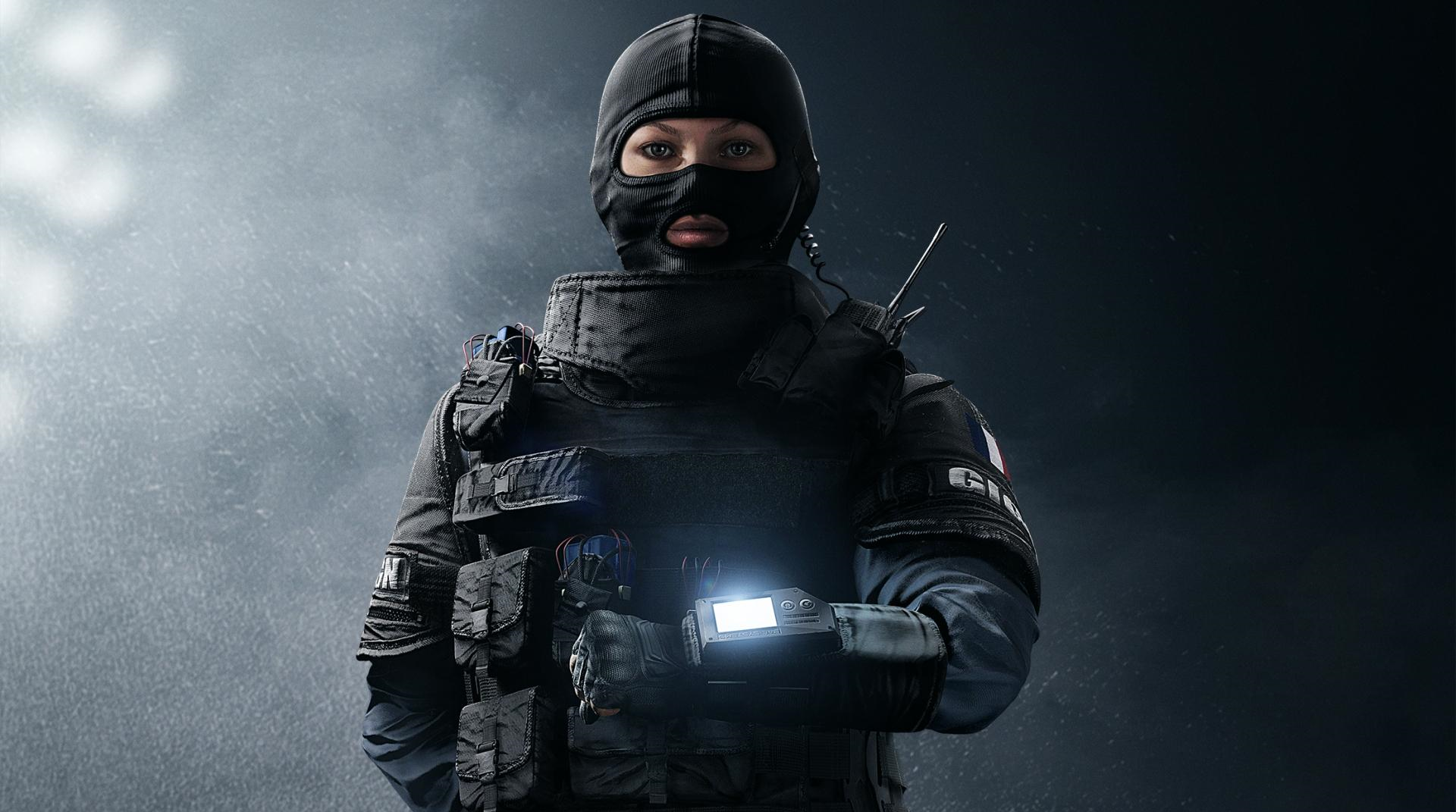 With three ‘Black Eye’ cameras, Valkyrie can provide the crucial information needed to win a round. The cameras, when thrown off the map, help defenders play aggressively during sorties, and the on-the-spot camera can be used to throw a C4 from below at an unsuspecting attacker. She is armed with D50 pistol,MPX submachine gun, and a shotgun. Expendables: a concussion grenade and a C4.