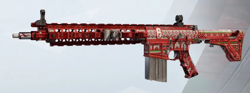 Coming in at fourth place, we have a weapon skin that perfectly matches your Mk17 CQB. This seasonal skin, with an Epic rarity, was launched on December 3, 2019. The weapon skin is part of the Blackbeard Bliss Bundle and was added to Operation Shifting Tides. You can find this skin in the Rainbow Six store for 50,000 Renown or 1200 R6 Credits. With its swirls and festive colors under the frosted look it has to show, this weapon skin will give you that Christmas nostalgia feel and should find its way into your stocking this year!