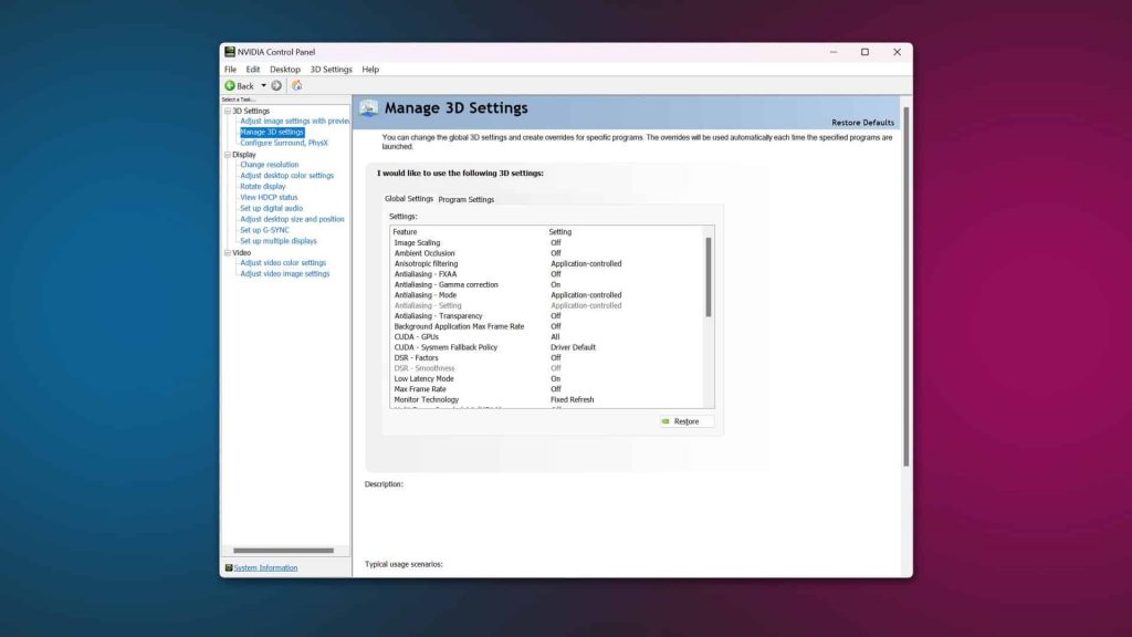 A setting that you dont want to skip for the max fps performance, head to the “Manage 3D settings” tab and then “Program Settings.” Find Valorant in the list of programs. If it’s not there, manually add it. Adjust the following settings.