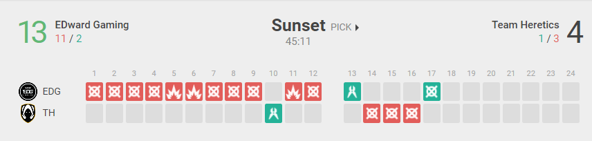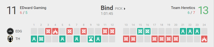 After losing the first map, EDG was determined, so going into the second map, Team Heretics had a confidence boost. EDG didn’t let that loss affect them, and they went on to destroy Team Heretics on this map, finishing the first half 11-1. EDG was locked in, so going into the defense side, EDG kept the same momentum and closed out the map 13-4.