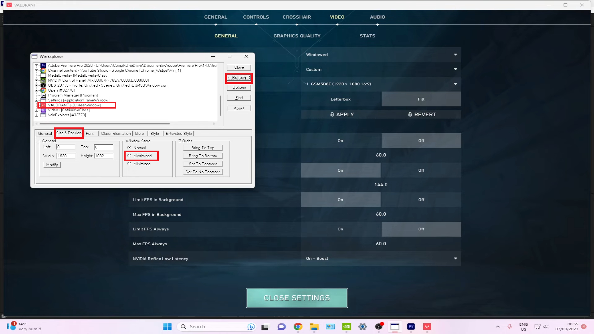 - Display Mode: if you have an issue with display mode stuck in windowed, you can try this software called Winexplorer to make your game full-screen. First, click on refresh and choose Valorant, then uncheck WS_BOARDER in the style section. After that, go to Size and Position and click on Maximized.