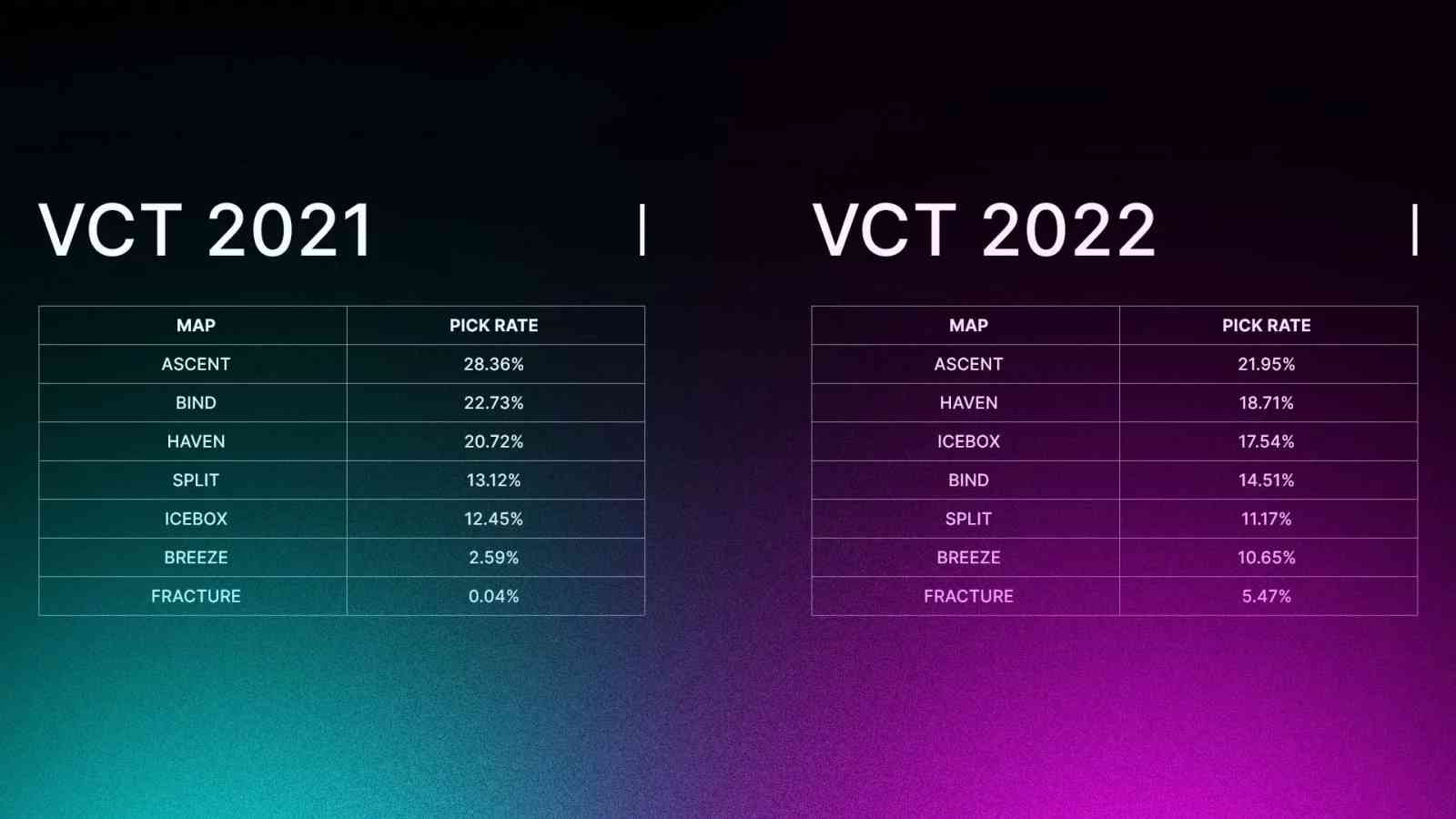 The following side-by-side comparison between the map pool shows a significant difference between the two VCTs.