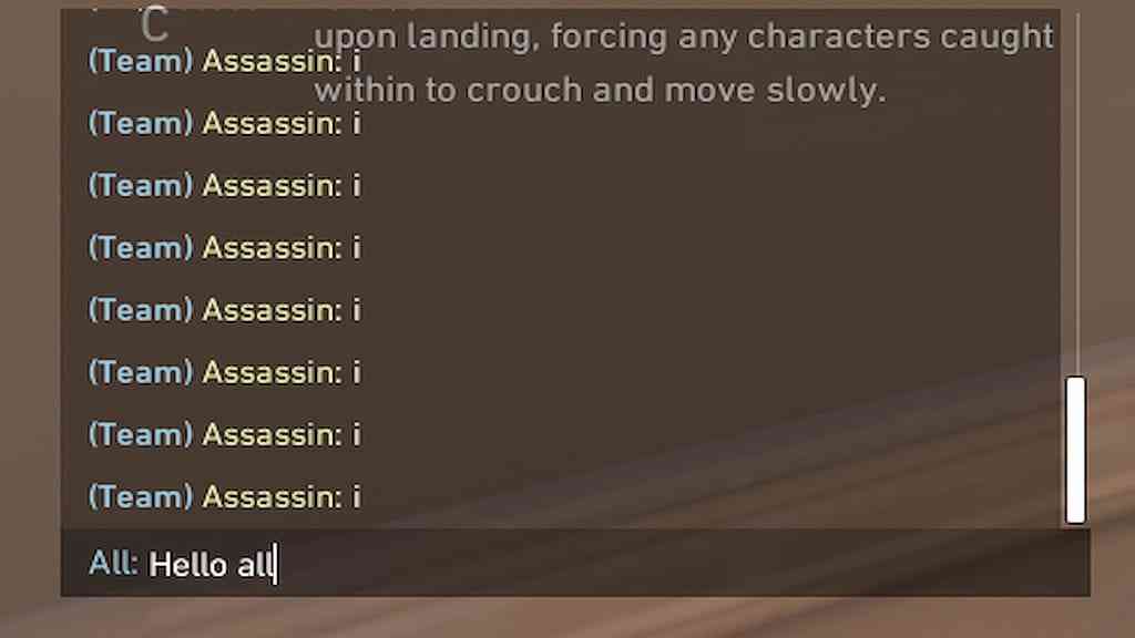 Use: Send a message that is visible to your team and the enemy team.