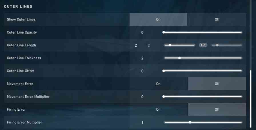 Once again, the other settings are down to personal preference. Both Movement Error and Firing Error are set off to have a static crosshair that doesn’t distract you from aiming.