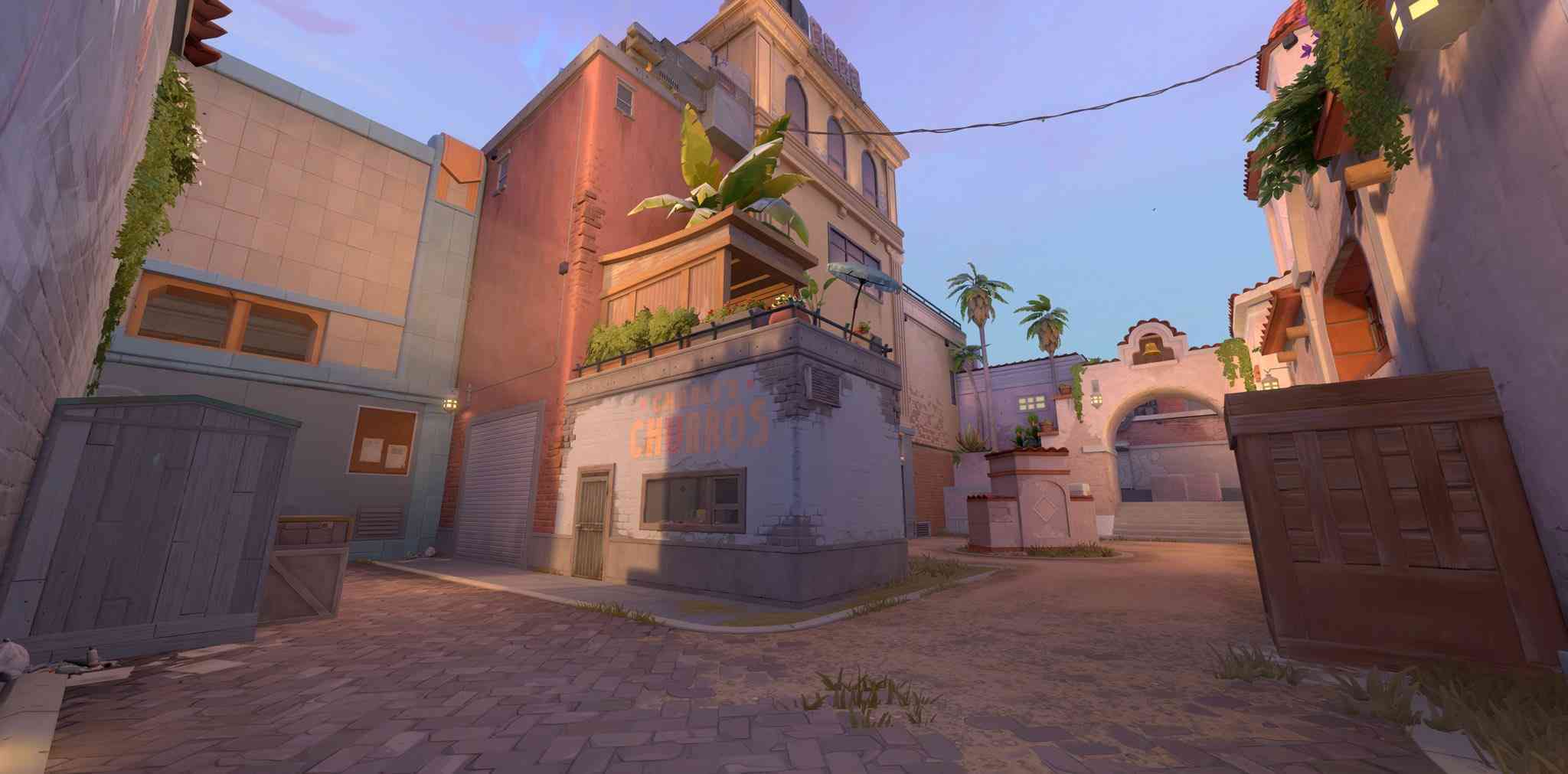 The first callout which is ideal to know is B Market. From the defenders’ point of view this is present on the left hand side of B Site. On this map B Site has two entry points attackers can use to enter into the site; it’™s worth noting that to enter through B Market players have to clear the middle of the map. Similar to Ascent, on Sunset many of the aim duels are seen in the middle. Another thing to note about this part of the map is there’™s a trap drop available, also similar to the trapdoor in Ascent on either site. This door can be broken down and is mainly used to stop entry into B Market from mid. Gaining control over this part of the map can help in initiating a late push into B Boba and catch the enemies off guard.