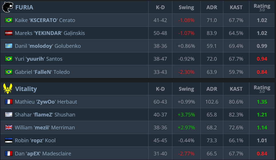 Vitality haven’t looked as dominant as usual throughout the tournament, but their resilience and experience have carried them through to yet another final. FURIA, on the other hand, have been red-hot – this will be their third Grand Final appearance of the season.