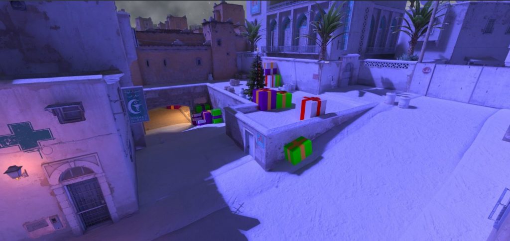 de_Mirage Christmas Edition | WINGMAN is a fan-made, Christmas reskin of Mirage built specifically for 2v2 Wingman in CS2. With Christmas visuals on top of the familiar Mirage architecture: snow, decorations, Santa props, etc.