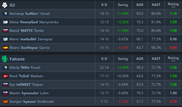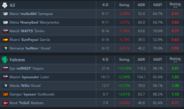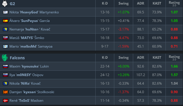 Falcons found rhythm with strong coordination between AWP and rifle setups – and G2 simply couldn’t keep up.