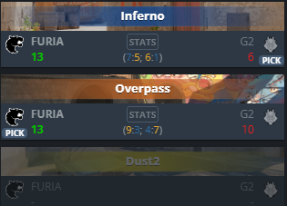 G2 showed more life on Overpass, fighting back after halftime and threatening to turn the map around. Their pressure brought the scoreline within striking distance, but FURIA’s composure shone through when it mattered most.